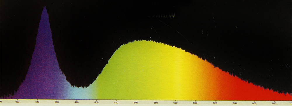Osram Oslon NP Blue emitter SpectrographTo the left is the Osram Oslon “Nature Perfect” blue reef emitter spectrograph.